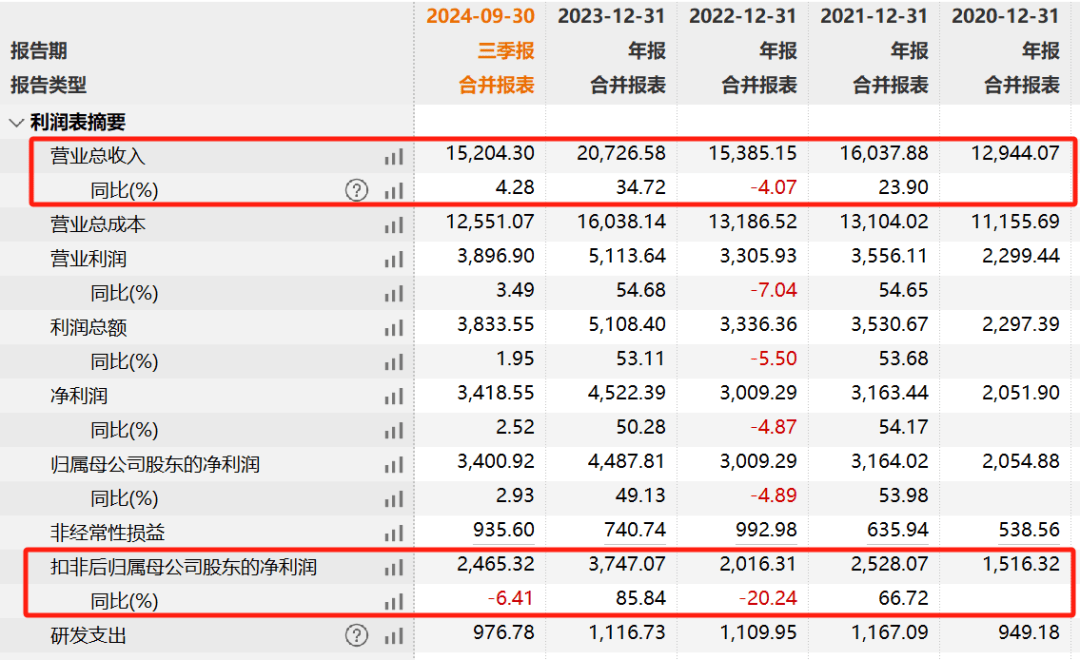 也就是说,公司业绩2021年取得增加后于2022年呈现下滑,但2023年却又强势反弹,昔时停业收入同比增加34。72%,扣非归母净利润同比增加85。84%。